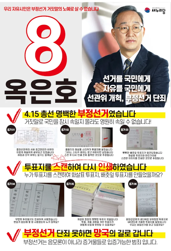 1979년 10.26 중앙정보부 부장 김재규의 박정희 대통령 시해 이후 중앙정보부의 안보 기능이 해체되었고, 1980년 5월 4년 중임제 대통령제 헌법안이 국무회의 상정 직후 5.18로 인하여 폐기되어 민주화의 좌절을 격었고, 1987년 국민의 대표인 대통령으로부터 중앙선관위 위원 3분의 2, 헌법 재판소 재판관 3분의 2의 임명권 박탈, 국회 해산권 박탈을 통하여 범죄선거 공화국이 시작되었다 주장한다. 1987년 부정선거는 노태우로부터 시작하여 1992년 한중수교로 더욱 가속화되었고, 2020년 노골적인 사전선거 위조 복사와 위조 투표지 투입, 선관위 위원장을 겸임하는 판사들의 노골적인 선관위 비호 등으로 온 국민이 알게 된 것으로 수십년간 이어온 좌우, 여야 없는 범죄선거의 결과로 주장한다.  범죄선거는 1987년 이후 계속되었고 선관위와 선관위 위원장을 겸임하는 판사들이 단 한번도 처벌받지 않았지만 단호하게 처벌되어야 한다 주장한다.