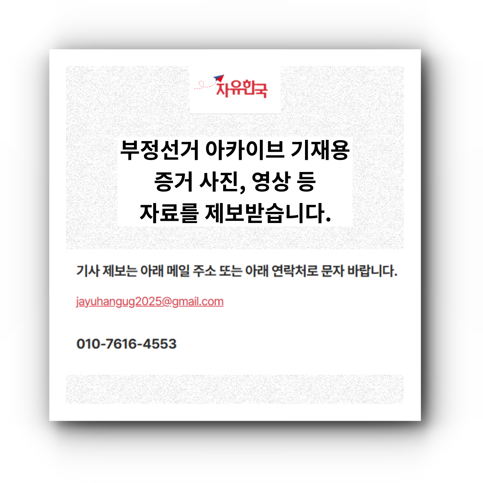 기사 제보는 아래 메일 주소 또는 아래 연락처로 문자 바랍니다.